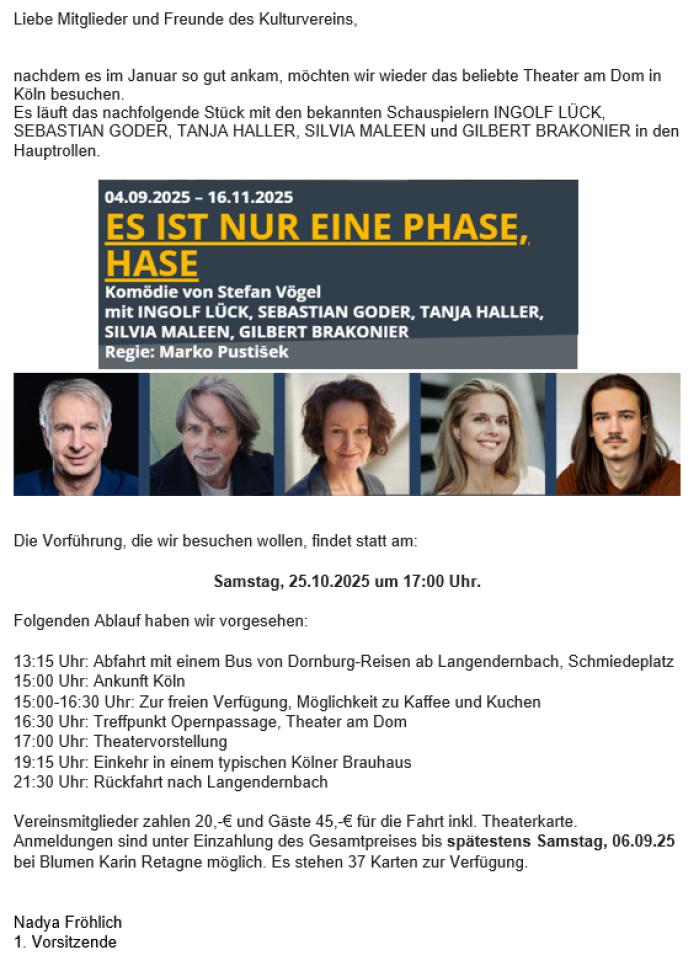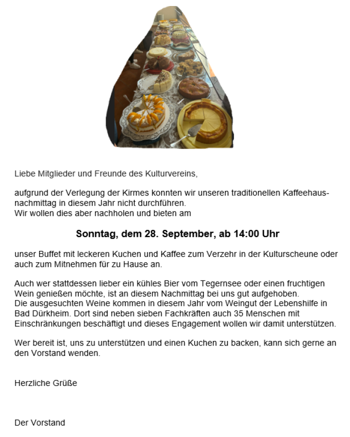 Kaffeehausnachmittag am Sonntag, 28.09.2025